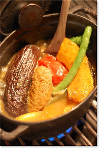 大ぶりにカットしたパプリカ、トマト、ナス、ズッキーニ等を 手羽先と一緒に3時間半、じっくりと煮こみました。